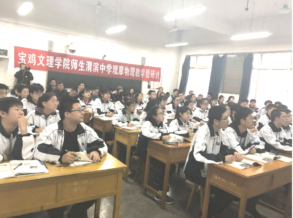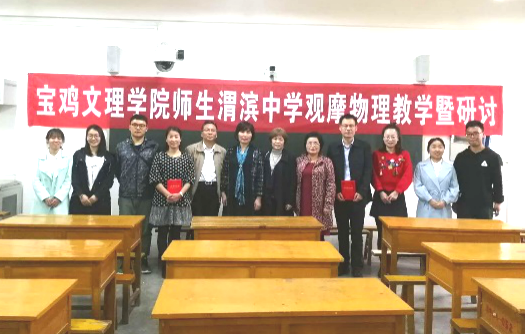 4月10日上午,威廉希尔官网副经理刘飞老师、沈亦红老师、周云波老师、冯青老师和六名物理教育学专业研究生和本科生共赴宝鸡市渭滨中学开展物理教学联合研讨活动。