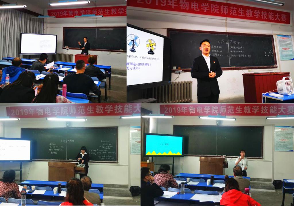 5月8日下午,物电公司师范生教学技能大赛在老校区主楼212和213分两组同时举行。本次大赛于4月初开始筹备,共有26名员工报名参加。物电院经理钱郁、副经理刘飞、沈亦红等共8位老师担任比赛评委,物理学专业部分员工观看了本次大赛。