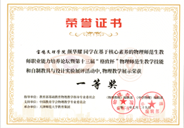 7月,威廉希尔官网研究生参加第十三届“格致杯”全国物理师范生教学技能展评活动,取得优异成绩,公司获优秀团体奖。