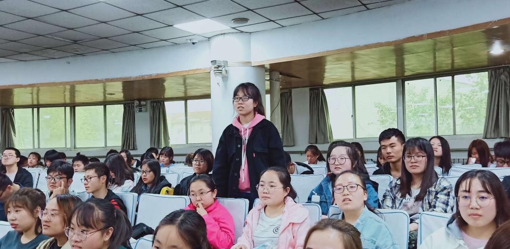 会上,首先由主持人介绍了四位2018-2019学年度国家奖学金和国家励志奖学金获得者郭静、王皓、高荣荣和王颖。随后,以视频的形式向大家展示了四位获奖者的学习和日常生活。最后,四位同学分别分享了自己总结的学习经验和方法,并与在座的同学们展开了讨论。