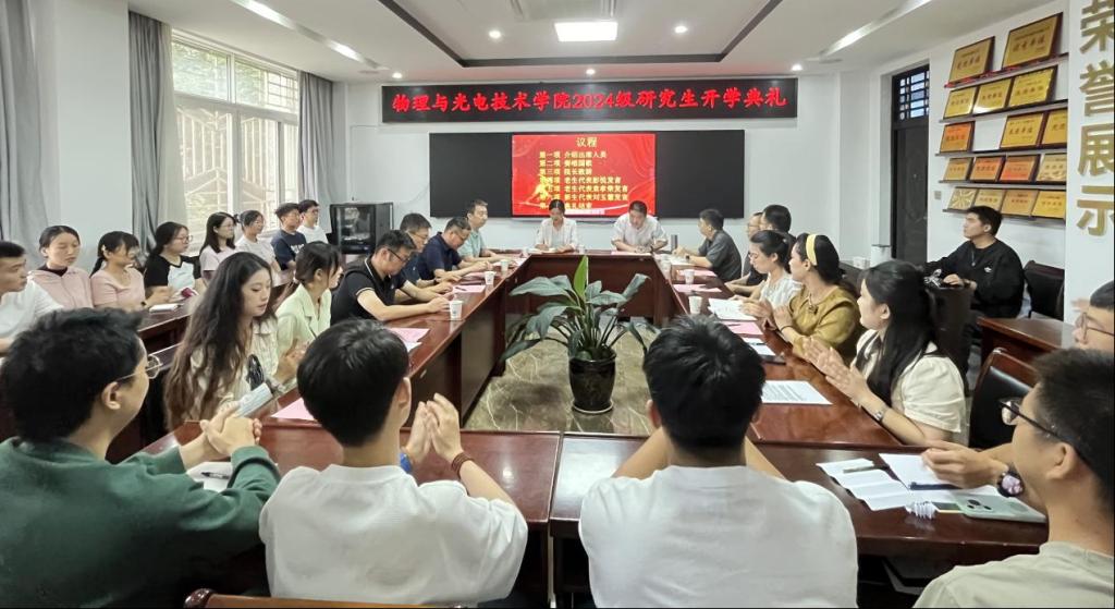 23级光学专业彭悦和学科物理专业袁孝荣分别作为研究生代表发言。彭悦分享了几点自己对于研究生生活的思考和建议;袁孝荣分享了自己的一些学习感悟,她希望师弟师妹们目标明确,笃行致远,博采众长,厚积薄发,将校训“博文明理、厚德尚能”作为立身立学的准则,内化于心,外化于行。24级刘玉慧同学作为新生代表发言,她表示面对即将到来的研究生生活,心中充满期待,在未来的科研道路上,自己将勇敢地面对挑战,在挫折中不断成长。