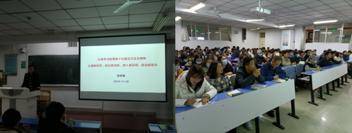 11月25日下午,在主楼201教室,公司副经理刘飞以“党的十九届五中全会精神深读”为题为教工第二支部全体党员讲授党课,用“意义、形势、目标、举措、作为”5个关键词谈了个人的学习体会。并结合工作实际以及调研成果,查找了公司团队建设、人才培养与教学研究等方面存在的主要问题,提出了进一步凝练学科方向、加强科学研究与科研平台建设,提升学科实力的思路,希望全体教工党员充分认识党的十九届五中全会的全局性历史性意义,全面把握“十四五”主要目标和到2035年远景目标,坚决做到“两个维护”的思想和行动自觉,将会议精神与个人教学、科研充分结合起来,努力为“十四五”开好局、起好步作出应有的贡献。