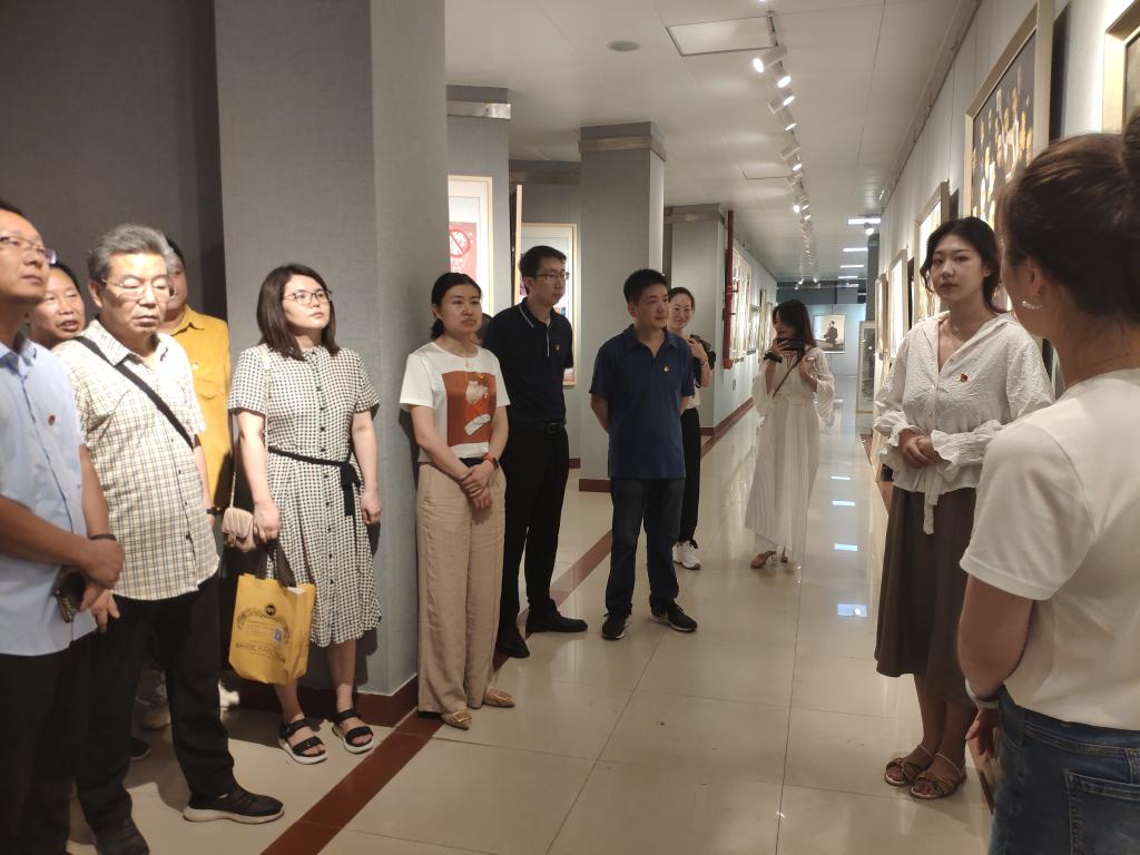 在讲解员的带领下,大家参观了《北大钟声》、《狼牙山五壮士》、《抗击非典》等25幅经典党史画作,作品类型包括国画、油画,从建党初期到抗日战争、改革开放及十八大以后,生动再现了中国共产党100年波澜壮阔的光辉历程,观展人员认真欣赏,深入了解了作品背后的党史故事。