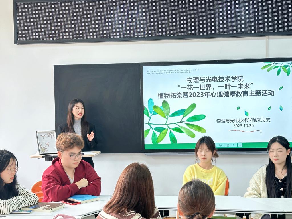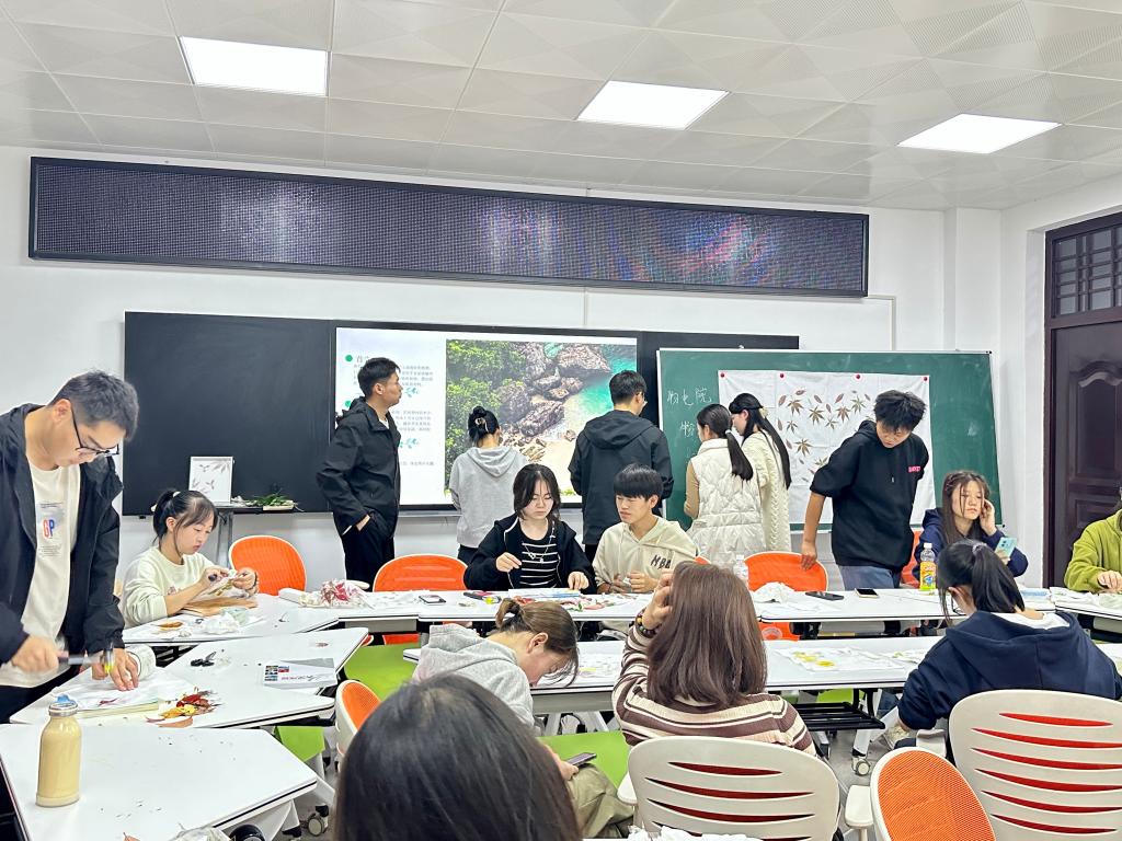 为进一步增强老员工心理健康意识,关注自身心理精神需求,缓解内心焦虑,感受手工制作乐趣,10月26日下午,公司于主教学楼202教室举行“一花一世界,一叶一未来”植物拓染暨2023年心理健康主题教育活动。辅导员周小玄、赵佳钰,2021-2023级心理委员以及部分员工干部等30余名员工参与了本次活动。
