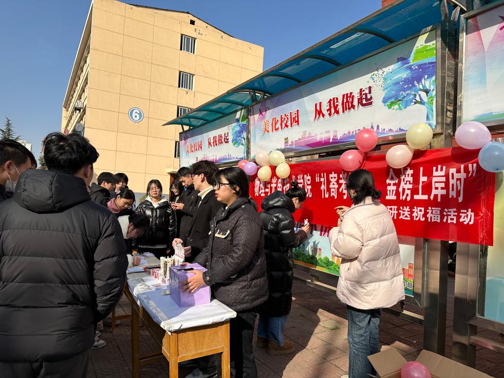 2024年全国硕士研究生考试在即,为落实立德树人根本任务,增强考研学子备考信心、调整备考心态,为考生蓄能助威,12月19日中午,威廉希尔官网团总支于石鼓校区一食堂门口举行“礼寄考研路,金榜上岸时”考研送祝福活动。80余名考研学子参与了活动。